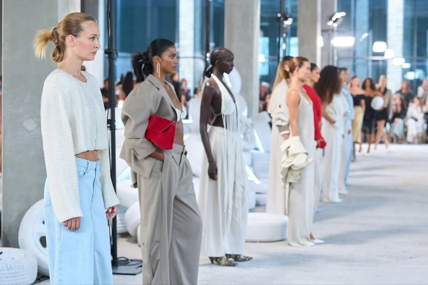 Gestuz is a Danish brand that is known for highlighting the strength of women drawing inspiration from classic feminine looks and the modern rock n’ roll woman. They unveiled their Spring/Summer 2026 collection in Copenhagen’s Paper Island in the unfinished architecture of number 71 where the used and quickly abandoned space is reimagined through an installation of discarded tires and is now a unique cultural space for locals and tourists alike. Check out the white tires behind the models! This is another long one because I loved so many of the looks. I narrowed it down to my favorite nine. Let’s jump right in with the first three pictured below: